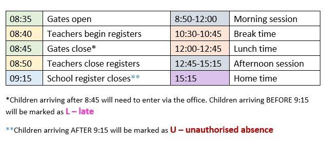 Attendance is based on a child being at school in time for the morning register as well as the afternoon register so being marked present for 2 sessions a day.
